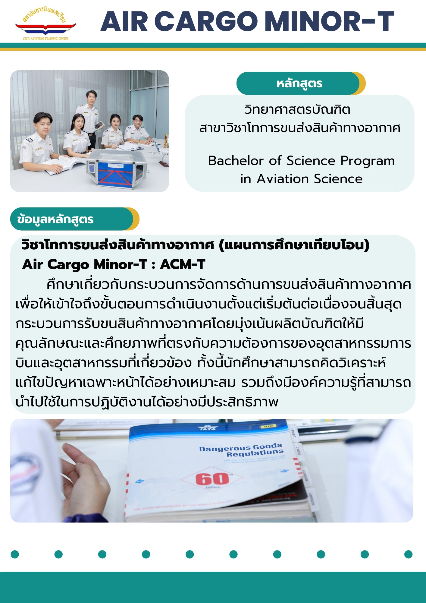 หลักสูตรวิทยาศาสตรบัณฑิต (แผนการศึกษาเทียบโอน) วิชาโทการขนส่งสินค้าทางอากาศ