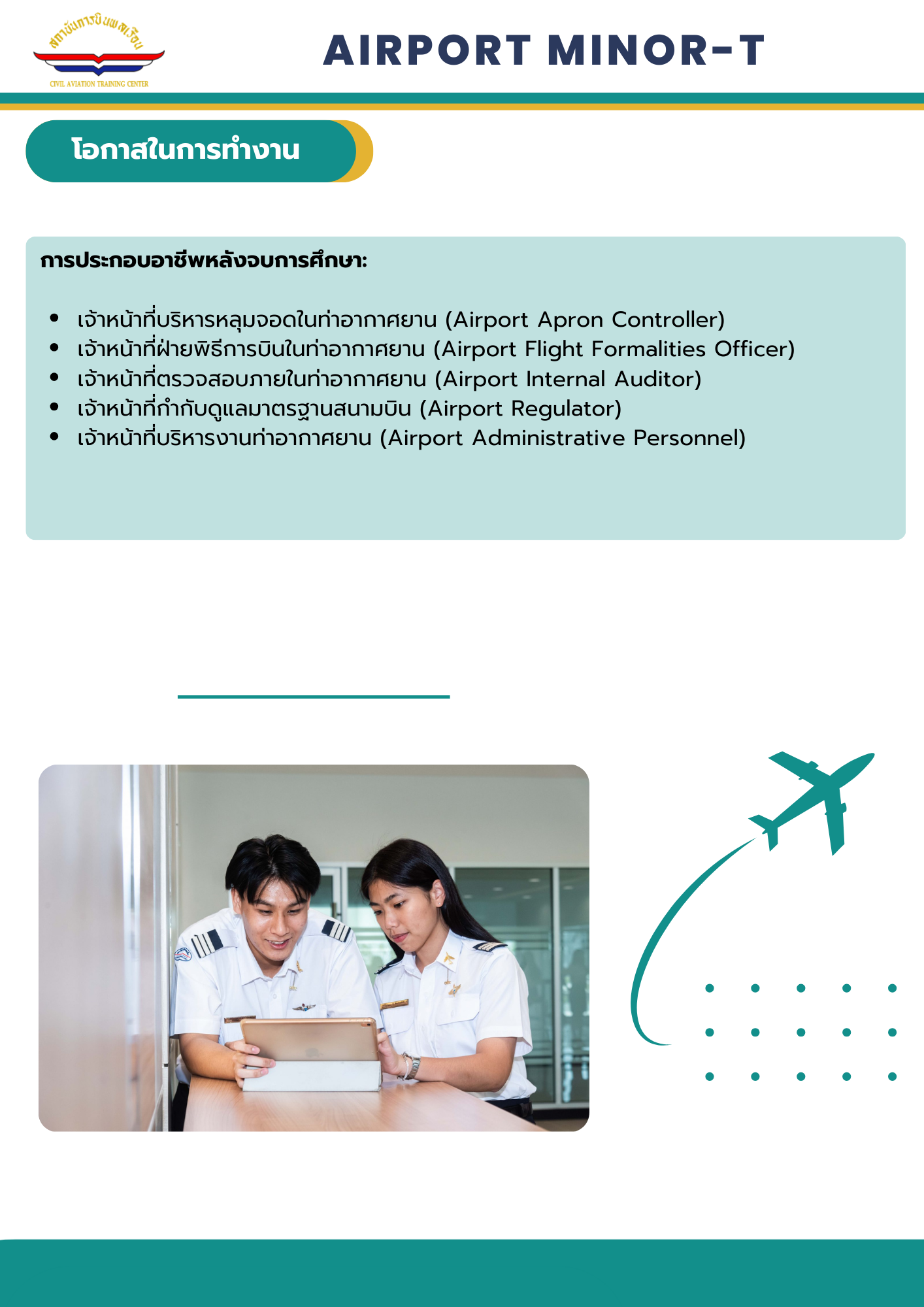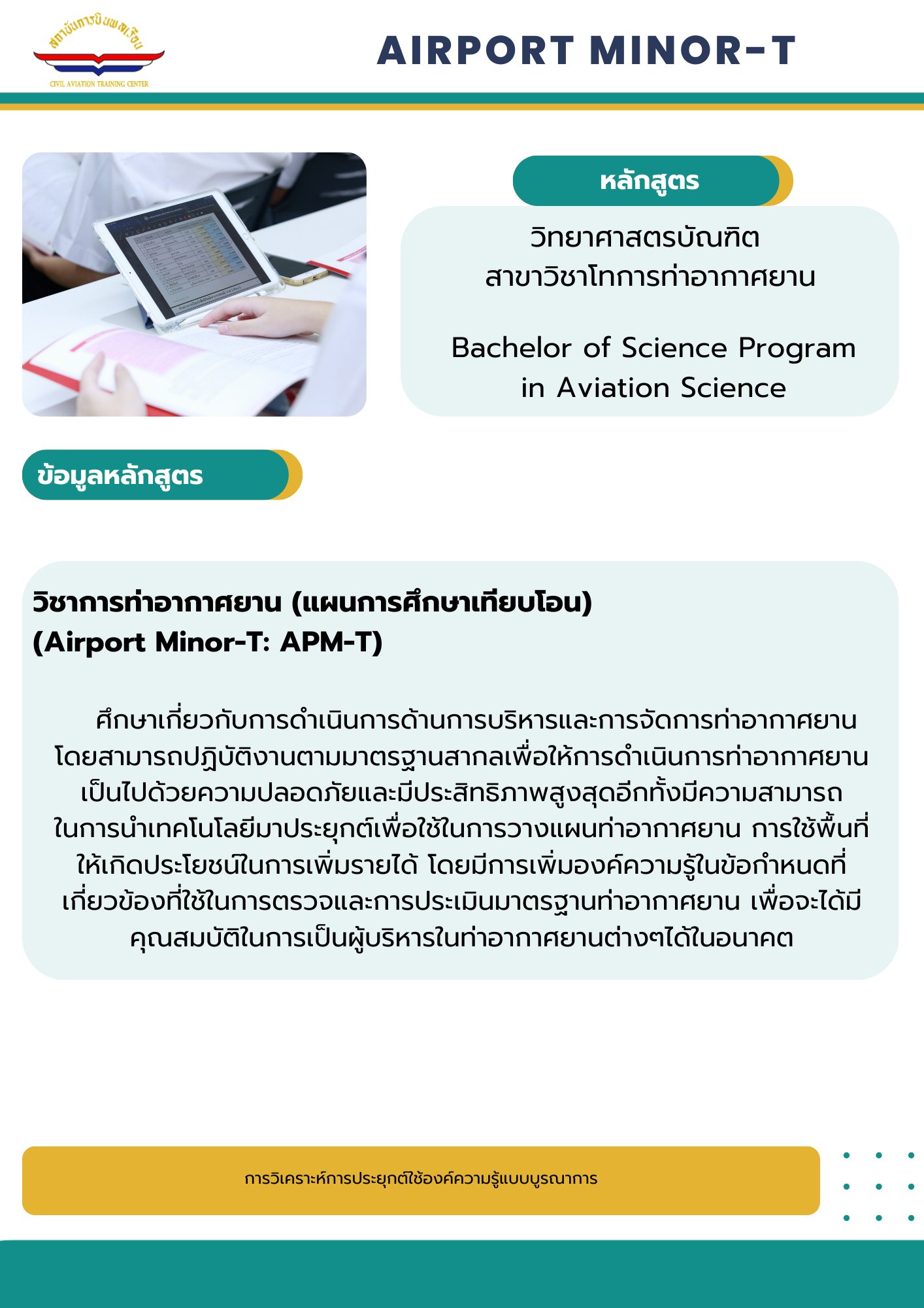 หลักสูตรวิทยาศาสตรบัณฑิต (แผนการศึกษาเทียบโอน) วิชาโทการท่าอากาศยาน